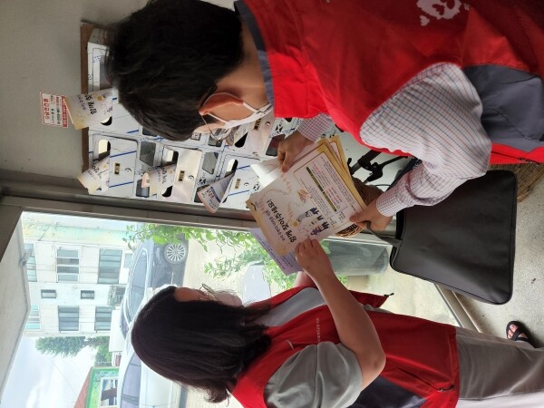 복지사각지대 안내문 홍보물품을 나눠 주며 주변의 어려운 이웃을 발견 시 적극적으로 제보해 줄 것을 당부했다.