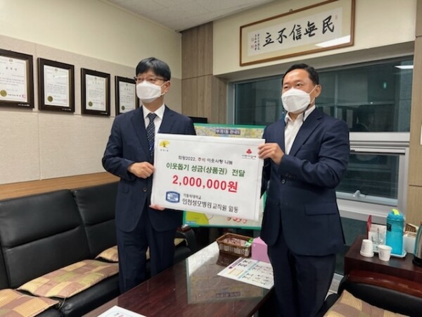 당수증 부개1동장은 “성금과 함께 따뜻한 마음까지 전해준 인천성모병원에 진심으로 감사하다”며 “후원받은 온누리상품권은 지역 내 어려운 이웃을 위해 소중히 사용하겠다”고 말했다.