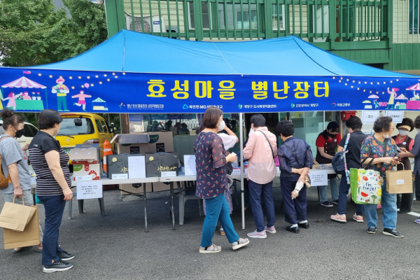 이날 개최된 마을장터는 별난 효성 마을관리 사회적협동조합의 농산물, 가공품 판매사업부가 주도하는 첫 번째 행사로 마을 조합 홍보와 함께 추석 선물세트와 김, 젓갈, 참기름, 들기름 등을 판매했다.