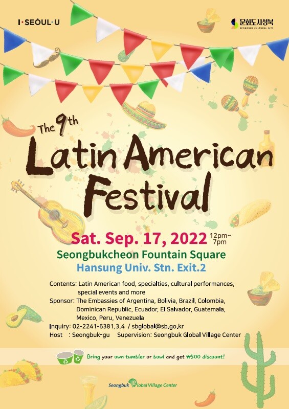 다가오는 9월 17일 토요일 서울 성북구가 ‘제9회 라틴아메리카 축제’를 성북천분수마루에서 개최한다.