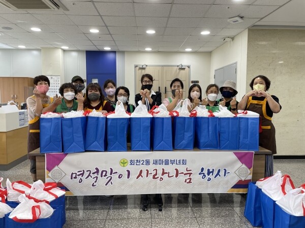 홍미영 회천2동장은 “어려운 이웃에게 온정을 나눠준 부녀회에 진심으로 감사드린다”며 “계속되는 코로나19와 물가상승 등으로 힘든 상황이지만 모두가 풍성하고 즐거운 한가위가 되기를 바란다”고 말했다.