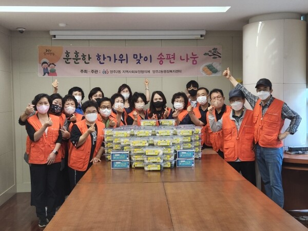훈훈한 한가위 맞이 송편 나눔 사업은 양주2동 지역사회보장협의체 특화사업으로 민족 고유 명절인 추석을 맞아 외롭게 추석을 보내는 독거노인과 저소득 취약계층이 따뜻한 명절을 보낼 수 있도록 기획된 사업이다.