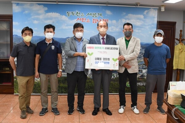 상패동 양돈회는 코로나19 장기화로 인해 양돈농가도 함께 어려움을 겪고 있음에도 불구하고 양돈 출하 시 발생하는 수익금의 일부를 꾸준히 모아 이웃돕기를 실천하고 있다.