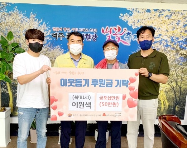 한민우 흥천면장은 “한가위 명절을 앞두고 나눔문화 확산에 기여하는 이원색님께 감사드린다 ‘희망 나눔 릴레이’가 지속되고 흥천면 저소득 소외계층을 위한 다양한 지원이 이루어지길 것이다”고 전했다.