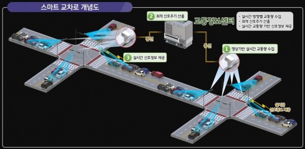 특히 스마트교차로 시스템은 교차로에 방향별 인공지능 카메라를 설치해 자동차의 속도, 차량 종류, 대기행렬 등을 분석하고 이에 따라 신호체계가 운영되게 함으로써 교차로 혼잡도를 개선할 수 있는 시스템이다.