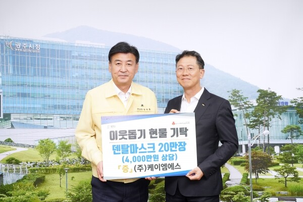 한편 같은 날 ㈜케이엠에스 김용한 대표는 어려운 이웃을 위해 덴탈마스크 20만장을 기탁하며 “코로나19가 다시 유행하고 있는 요즘 모두 건강하게 이 시기를 견디길 바란다”고 말했다.