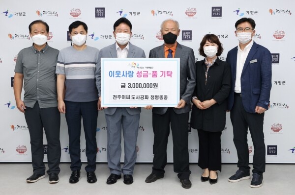 이에 서태원 가평군수는 “모두가 힘든 시기에 항상 이웃을 먼저 생각하는 전주이씨 도사공파 청평종중 이남진 회장님을 비롯한 회원들의 아름다운 선행에 감사의 뜻을 전한다”며 “어렵고 소외된 이웃들이 따뜻하고 넉넉한 추석명절을 보낼 수 있도록 소중히 전달하겠다”고 전했다.