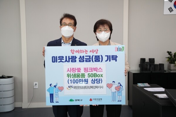 지사로부터 전달받은 핑크박스는 강북구청을 통해 관내 취약계층 여성 청소년 50명에게 전달될 예정이다.