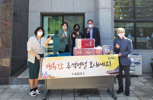 이날 권 구청장은 과일 화장지, 세탁세제 등 시설에 필요한 물품을 전달하고 시설 관계자들을 격려했다.