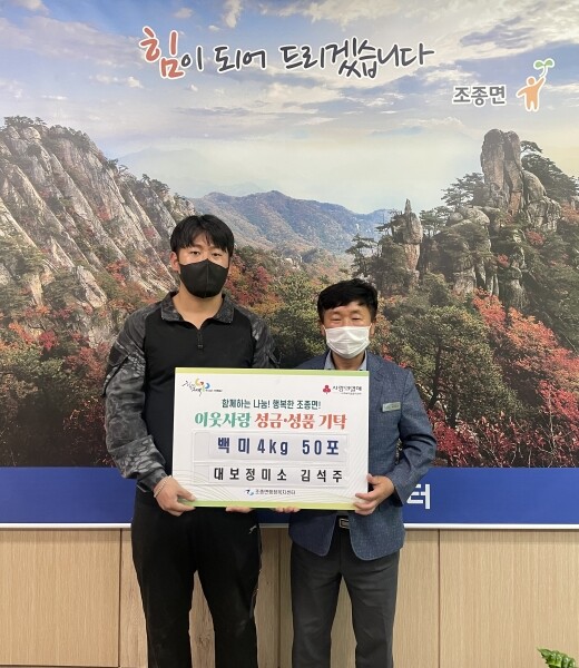 매년 이웃사랑을 실천하고 있는 대보정미소 대표는 “추석을 맞이해 조종면민들에게 조금이나마 도움이 되고자 쌀을 준비했다”며 “앞으로도 지역사회의 다양한 나눔 활동에 적극적으로 참여하겠다”고 말했다.