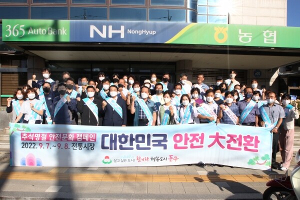 이번 캠페인은‘대한민국 안전 대전환’을 위한 안전 문화 운동으로 구민들의 안전의식을 높이기 위해 전통시장 장보기 행사를 병행해 실시해 유관기관, 단체, 공무원 등 80여명이 참여했다.