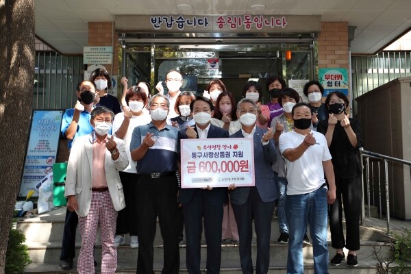 이번 이웃돕기 행사는 추석 명절을 맞아 관내 저소득 소외계층 20세대를 대상으로 1세당 3만원씩 총 60만원의 동구사랑상품권을 지원해 지역경제 활성화를 도모하고 주민들이 서로 도우며 화합하는 송림1동 마을공동체를 형성하기 위해 마련됐다.