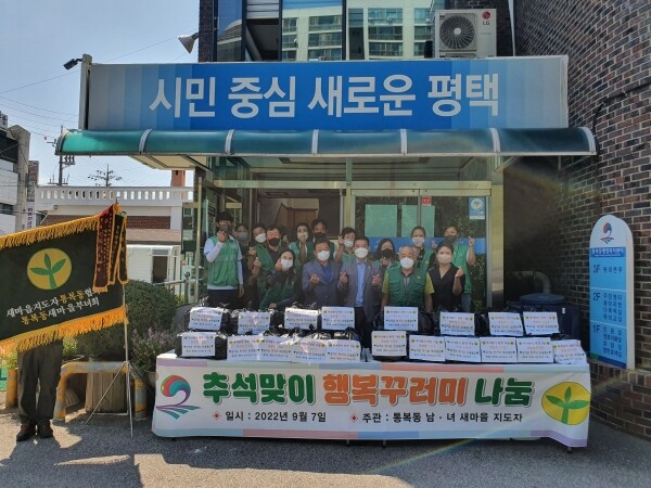 이영월 동장은 “어려운 이웃을 잊지 않고 추석 음식을 만들어 나눔 행사를 마련해주신 새마을 회원분들께 감사드리며 앞으로도 소외된 이웃 없는 통복동이 될 수 있도록 힘쓰겠다”고 말했다.