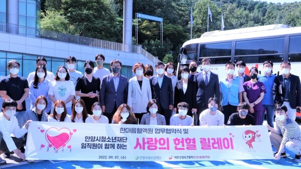 재단은 이 날 한마음혈액원과 헌혈 릴레이 전개를 위한 업무협약을 체결하고 헌혈 버스를 지원 받아 단체 헌혈을 실시했다.