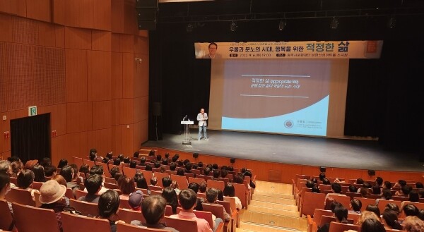 광주시문화재단 남한산성아트홀 소극장에서 열린 강연에서 김 교수는 행복은 목표가 아닌 도구임을 인식하고 작은 행복이라도 자주 느끼도록 하는 것이 우리의 삶을 풍요롭게 하는데 도움이 된다고 강조했다.