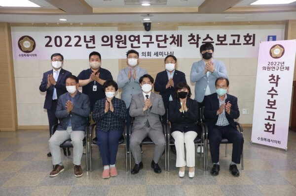 이날 연구회 최원용 대표의원을 비롯한 소속 의원, 수원시 관련부서 및 용역기관 관계자 등이 참여한 가운데 수원시 조례 발전을 위한 연구용역 착수보고 청취 후 의견을 나눴다.