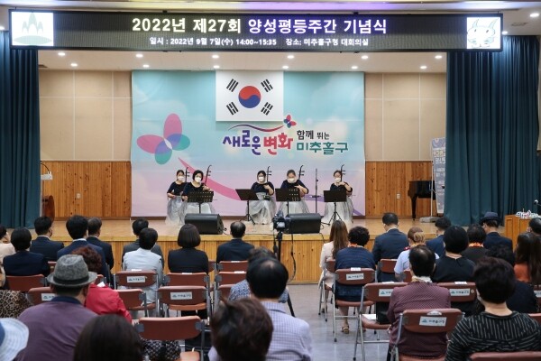 기념식은 ‘주민과 함께 공감하는 양성평등도시 미추홀구’를 주제로 약 150여명 주민이 참석했다.