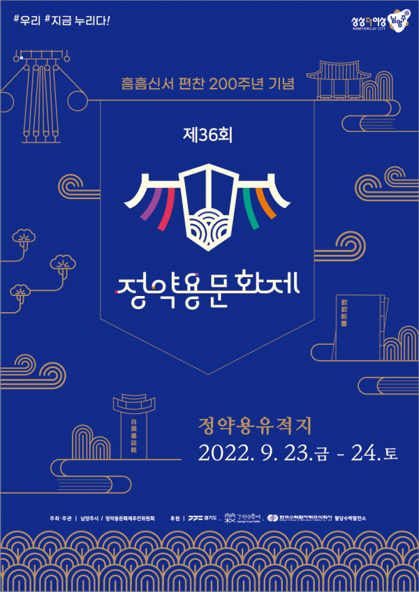 이번 ‘제36회 정약용문화제’는 정약용 선생의 대표 저서인 형법서 ‘흠흠신서’ 편찬 200주년을 기념해 코로나19 장기화로 인한 고난을 잘 이겨 내고 소중한 일상을 되찾아 맘껏 누리길 바란다는 소망을 담아 ‘우리 지금, 누리다’를 슬로건으로 내걸었다.