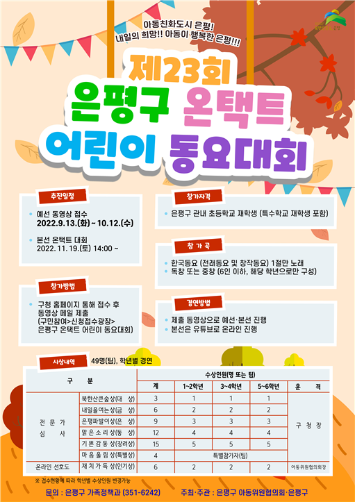 은평구 아동위원협의회가 주관하는 ‘은평구 어린이 동요부르기 대회’는 올해로 23회를 맞이하는 유서 깊은 아동 행사다.