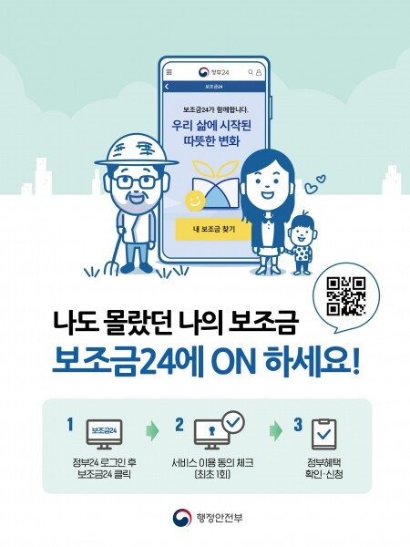 ‘보조금24’는 중앙정부, 지자체, 공공기관 등에서 받을 수 있는 다양한 수혜서비스를 동 주민센터나 각각의 사이트에 방문하지 않고도 한꺼번에 확인할 수 있는 맞춤 안내 서비스로 지난해 4월부터 전 국민을 대상으로 시행되고 있다.