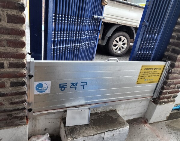 관내 유압식 물막이판 설치된 곳은 사당역 일대 3곳으로 동작대로 노면수 유입 방지를 위해 설치했다.