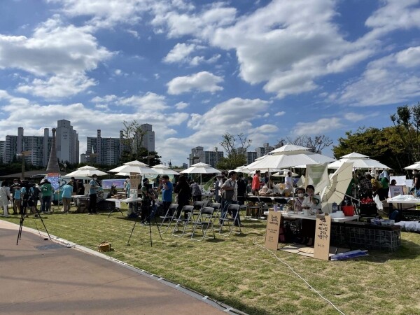 또 공원에서 생산되는 산물을 활용해 화분만들기, 봉숭아 물들이기, 염색천·나무피리 만들기 등 체험 부스 운영과 상동호수공원 케어가든의 포도로 포도청 담그기, 포도 따기 체험 등 다양한 프로그램을 운영할 예정이다.