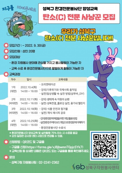 이승로 성북구청장은 “기후변화 대응은 먼 곳이 아닌, 우리의 일상에서부터 시작해야 한다”며 “탄소 전문 사냥꾼 모집에 구민의 많은 관심과 참여를 부탁드린다”고 말했다.