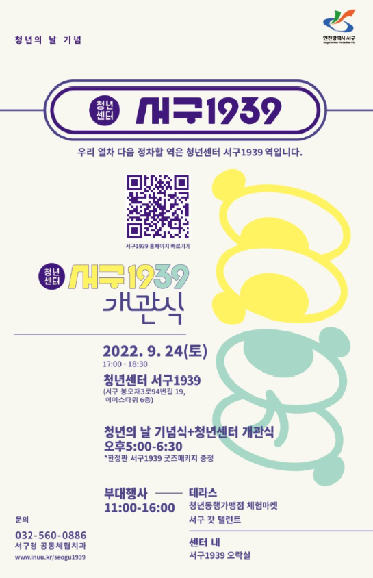 서구 청년센터 개관식 등 행사와 관련된 자세한 사항과 참여 신청은 서구청 홈페이지 ‘새소식’에서 확인하거나 공동체협치과로 문의하면 된다.
