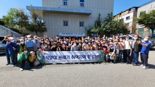 호우 및 태풍으로 인해 마을 주변에 쌓인 쓰레기 수거·불법현수막 제거 등 깨끗한 거리 조성을 위해 신장동 통장단 협의회와 동 직원 등 90여명이 10팀으로 나눠 관할지역을 순회하며 환경정비를 실시했다.