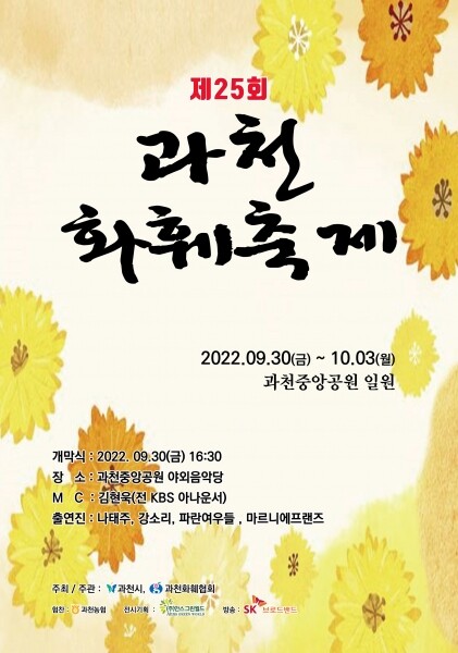 신계용 과천시장은 “과천화훼축제는 우리 과천 화훼의 우수성을 널리 알리는 계기가 되는 동시에, 시민들이 생활속에서 꽃을 가까이 할 수 있는 좋은 기회가 될 것”이라며 “코로나19로 3년 만에 다시 열린 과천화훼축제에 많은 분께서 관심을 가져주시고 축제장을 찾아주시기를 바란다”고 말했다.