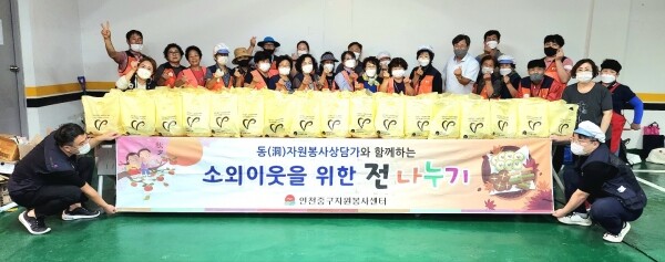 아울러 이번 활동을 진행한 고미연 사회복지사는 “추석명절을 맞아 어려운 이웃들을 위해 나눔을 실천하는 자원봉사자들의 활동에 감사드린다”며 “앞으로도 센터는 주변의 이웃과 따뜻한 정을 나누고 이웃사랑을 실천하는 따뜻한 사회문화 조성에 앞장서도록 노력하겠다”고 전했다.