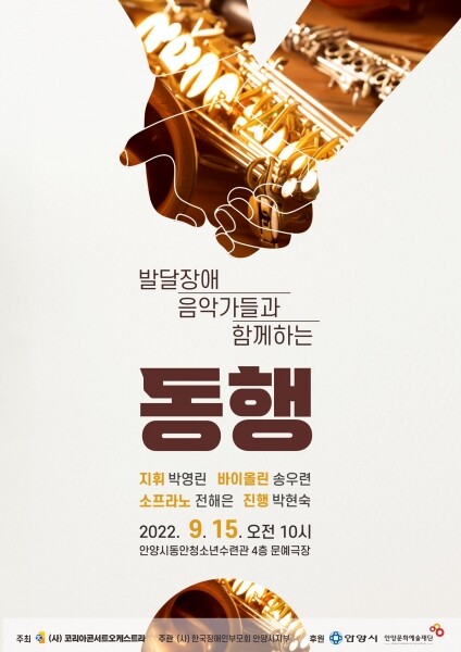 이번 음악회는 코리아콘서트 오케스트라와 한국장애인부모회 안양시지회가 공동주최하고 안양시와 안양문화예술재단의 후원으로 열린다.
