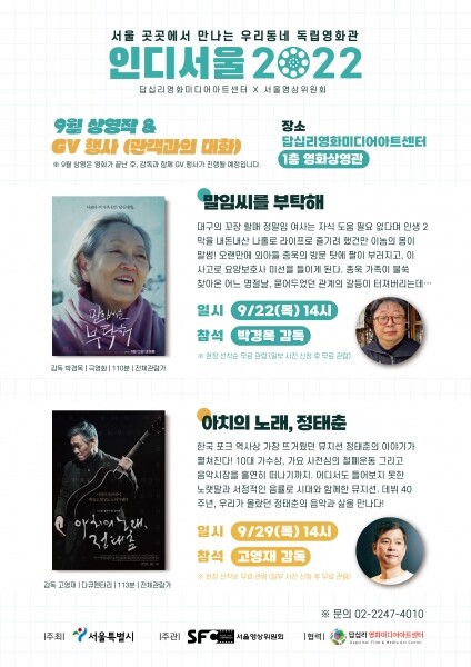 오는 22일 박경목 감독의 ‘말임씨를 부탁해’를 시작으로 29일에는 고영재 감독의 ‘아치의 노래, 정태춘’이 상영된다.