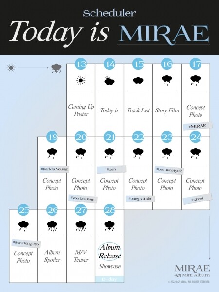 미래소년의 소속사 DSP미디어는 지난 14일 공식 SNS를 통해 네 번째 미니앨범 ‘Ourturn - MIRAE 4th Mini Album'의 스케줄러를 공개했다.