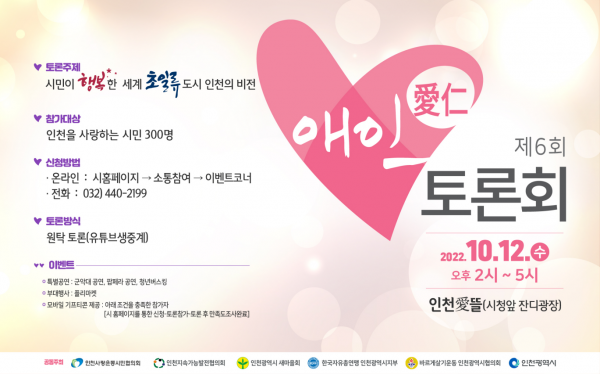 이번 토론회는 인천을 사랑하는 시민 300명과 ‘시민이 행복한 세계 초일류도시 인천’의 비전을 주제로 민선8기 비전, 핵심가치, 시정목표 등을 함께 공유하기 위해 마련됐다.