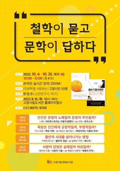 ‘철학이 묻고 문학이 답하다’는 인문학적 관심을 충족시키고 지식과 소양을 넓힐 수 있는 기회가 될 것이다.