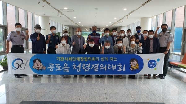 이호만 공도읍장은 “이번 청렴실천 결의대회를 통해 공도읍 전체가 청렴한 마음가짐을 더욱 공고히 하길 바라며 청렴이 일상화되는 때까지 지속적으로 청렴 분위기 활성화를 위해 노력하겠다”고 말했다.