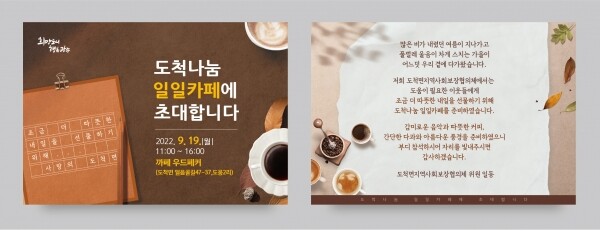 도척 나눔 1일 카페에서는 커피, 차, 떡, 과일 등 다과가 제공되며 수공예품을 판매하는 작은 바자회도 열릴 예정이다.
