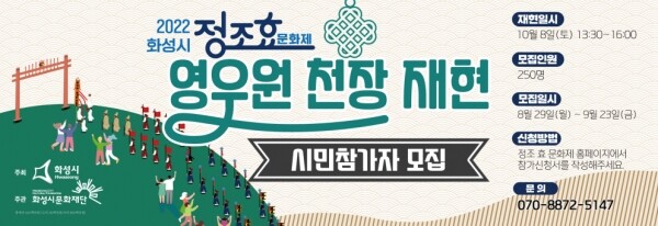 ‘영우원 천장’은 만년제부터 융릉에 이르는 약 2.1km를 정조의 효심으로 사도세자의 묘를 옮기는 행렬로 함께할 ‘시민행렬단’ 약 200명을 9월 30일까지 모집한다.