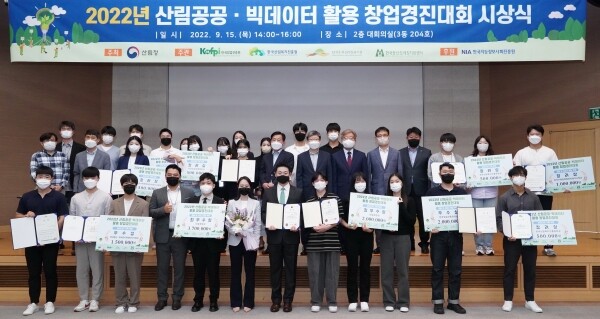 장려상에는 랜덤포레스트(염슬기 외 4명) 팀의 ‘NFT와 추천서비스를 활용한 휴양림 활성화 플랫폼’, 온젊.(김영채 외 2명) 팀의 ‘산림관광을 통해 산을 즐기도록 지원하는 모바일 앱 서비스(산플)’, Walking Life(권민서 외 3명) 팀의 ‘맞춤형 도시숲 복지서비스’, 산림꾼(김동완 외 3명) 팀의 ‘산림 여행을 책임지는 산림꾼’, PLINIC+(이고운 외 2명) 팀의 ‘내 손안의 식물병원 PLINIC+’, 드로퍼(권수빈 외 2명) 팀의 ‘등산 동행자 및 시설 위치 공유 서비스(웨어드랍)’가 선정됐다.