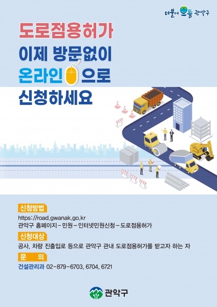 구는 이를 개선하고자 도로점용허가 온라인 시스템을 구축, 이제는 홈페이지를 통해 신청부터 허가증 수령까지 방문 없이 원스톱으로 민원 처리가 가능하다.