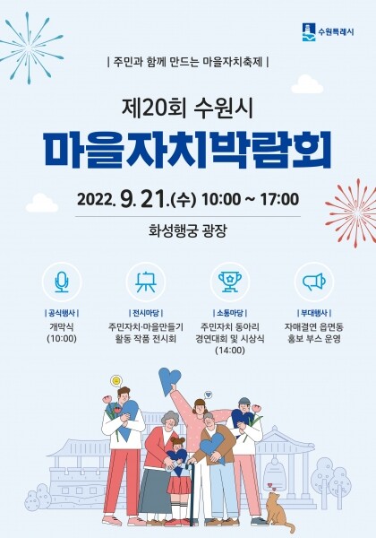 제20회 수원시 마을자치박람회는 ‘전시마당’, ‘소통마당’, ‘부대행사’ 등으로 진행된다.