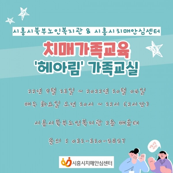 이에 시흥시치매안심센터는 치매환자 가족지원서비스의 접근성과 편의성을 높이기 위해 시흥시북부노인복지관과 협력해 찾아가는 ‘헤아림’ 치매가족교실을 계획했다.