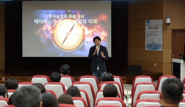 이날 특강에 초빙된 민승규 전 농촌진흥청장은 “메타버스는 현실 세계와 같은 사회·경제·문화 활동이 이뤄지는 3차원의 가상세계로 농업 분야도 가상공간에 가상농장을 만들고 농산물 판매도 이루어지는 것이 현실화되고 있어 농업의 정책과 연구, 기술보급도 이에 맞춰 준비해야 한다”고 강조했다.