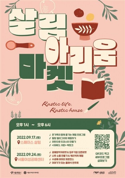정연정 서울시여성가족재단 대표이사는 “서울시여성가족재단과 서울여성공예센터는 서울시민이 수확의 계절, 가을의 시작을 ‘살림×아리움 마켓’에서 느낄 수 있도록 다채로운 프로그램을 마련했다”며 “복잡하고 바쁜 일상에서 잠시나마 벗어나 아이와 부모가 함께 여유로운 시간을 즐겨보기 바란다”고 말했다.