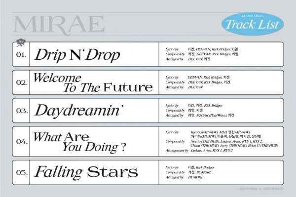 미래소년의 소속사 DSP미디어는 지난 15일 공식 SNS 채널을 통해 새 앨범의 곡 정보가 수록된 트랙리스트를 공개했다.