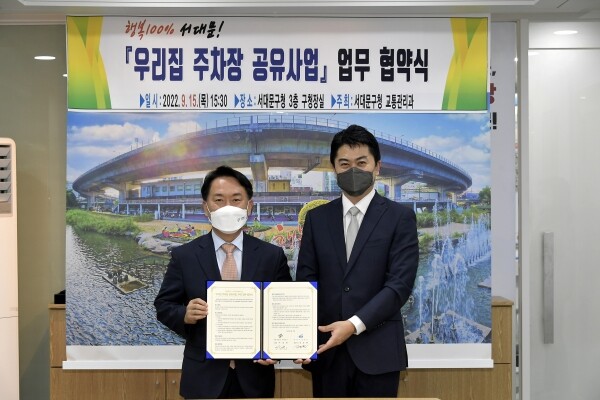 이달 15일 열린 서대문구와 ㈜모두컴퍼니의 업무협약식에서 이성헌 구청장은 “나누며 상생하는 주차장 공유 사업에 구민 분들의 많은 관심과 참여를 부탁드린다”고 말했다.