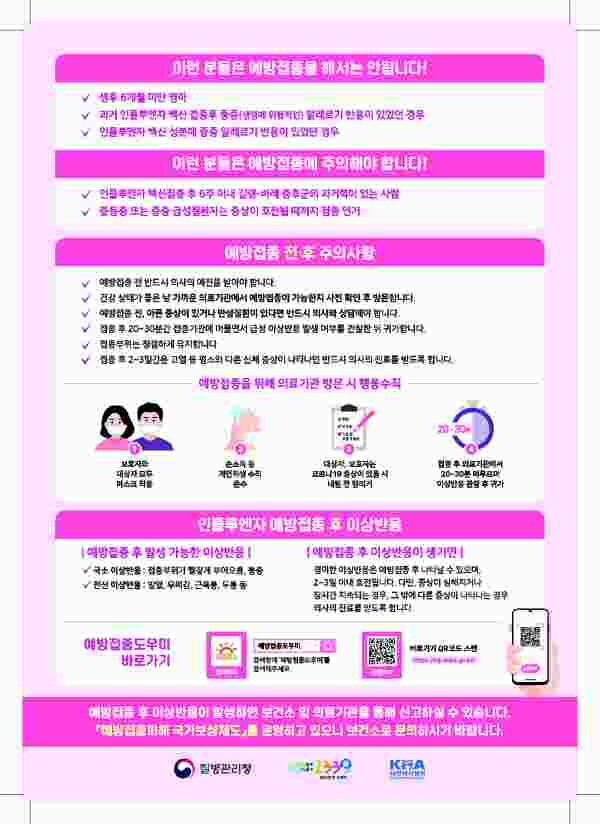 또한 어린이 인플루엔자 예방접종의 경우 보호자 동행을 원칙으로 하나, 부득이하게 부모, 법정대리인 등 보호자 동행이 어려운 경우, 사전에 보호자가 작성한 예방접종 시행 동의서 및 예진표 소지 후 병원을 방문해야 한다.