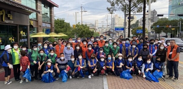 참여자들은 코로나 확산 방지를 위해 마스크를 착용하고 8개 조로 분산해 이동했으며 동일로·시민로 등 대로변과 청룡마을 등 주택가 이면도로를 청소하며 구슬땀을 흘렸다.