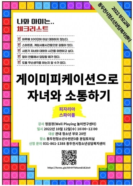 오는 10월 12일에는 게임 과다 및 중독을 예방·완화하고 가족이 함께 즐기며 소통할 수 있는 보드게임을 소재로 웰-플레잉 정원경 센터장을 초빙해 ‘게이미피케이션으로 자녀와 소통하기’를 진행할 예정이다.